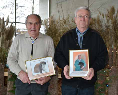 ihre grossen Verdienste an der Englischwidder-Zucht wurden Alfred Hengstler und Sepp Studer mit grossem Applaus zu Ehrenmitglieder ernannt Alfred züchtete 45 Jahre diese Rasse Sepp widmet sich ihnen seit 1982 |